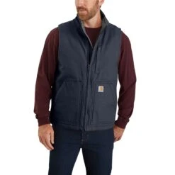 Carhartt Vests: Men’s 104394 DKB Dark Brown Relaxed Fit Washed Duck Sherpa-Lined Vest